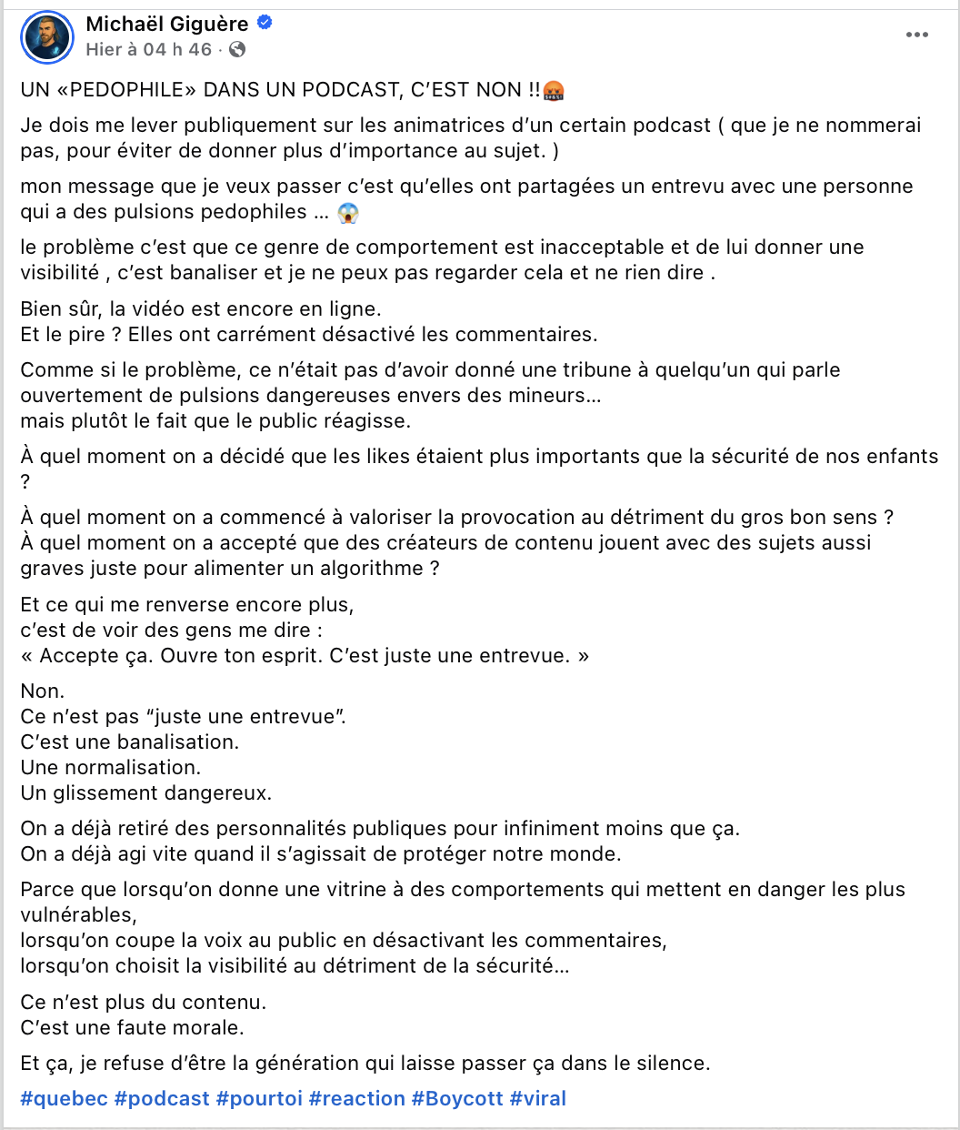 Je disais que je l’avais prédis que la banalisation de la pédophilie allait passer par les prostituées numériques (onlyfan) supposés féministes. Ça fait des années je vous tanne avec ça et je dis « ça s’en vient ! » Ça fait des années que j’écris qu’elles influencent énormément les jeunes filles dans la décadence et que ça fini toujours, toujours, TOUJOURS de la même façon.