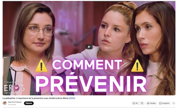 Wow ! J’ai hâte d’écouter ça pour entendre les commentaires stupides de Joanie et voir Lysandre se retenir pour pas se doigter en écoutant un autre témoignage pervers.