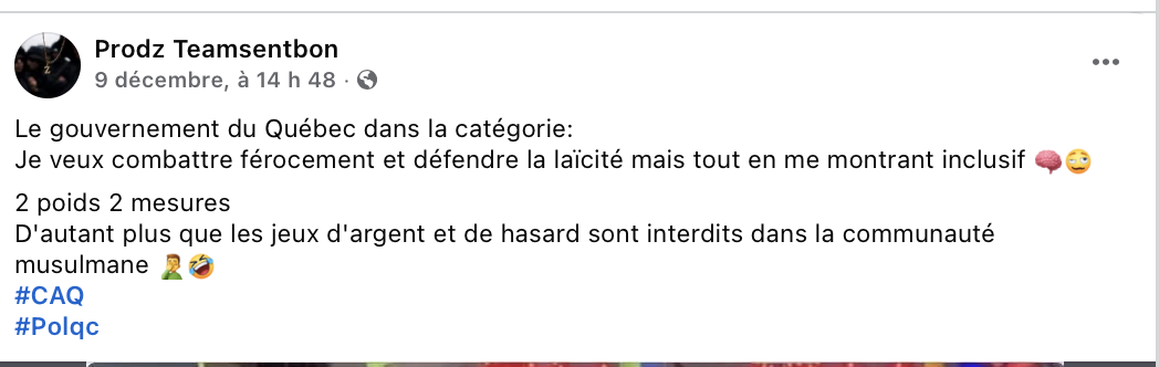 Le taux de musulmanes qui se voilent est une christie de minorité au Quebec pis on sacre ca sur des pancartes comme si c’était une majorité. Tout ca pour du marketing et se faire du capital politique. Je donne 10 ans au Quebec pour ca devienne comme la France