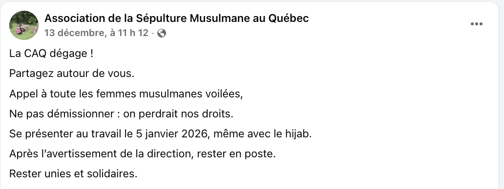 Le 5 janvier 2026, toutes les femmes voilées au Québec ont le mot d’ordre de porter leur hijab au travail!