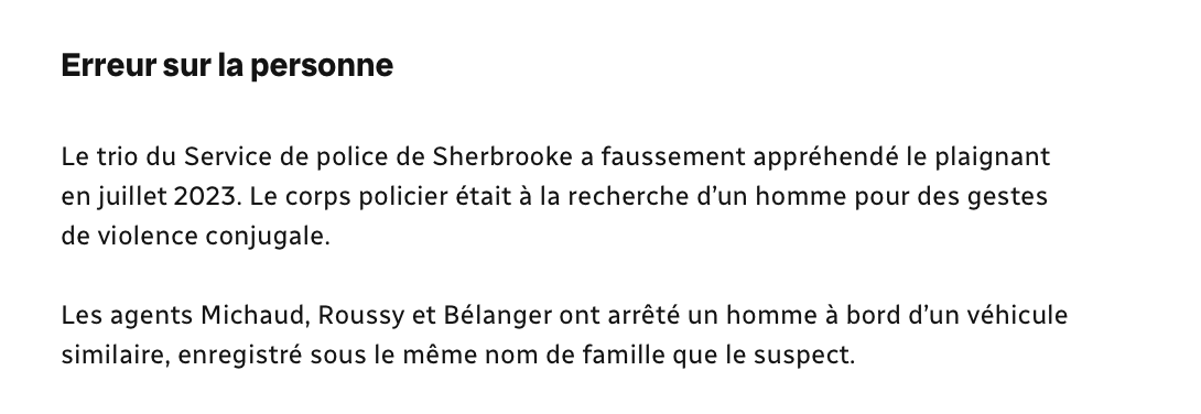 Dommage mais au bout de la ligne, il va recevoir un bon montant forfaitaire sans procès. La police ne voudra pas en rajouter dans l’opinion publique.