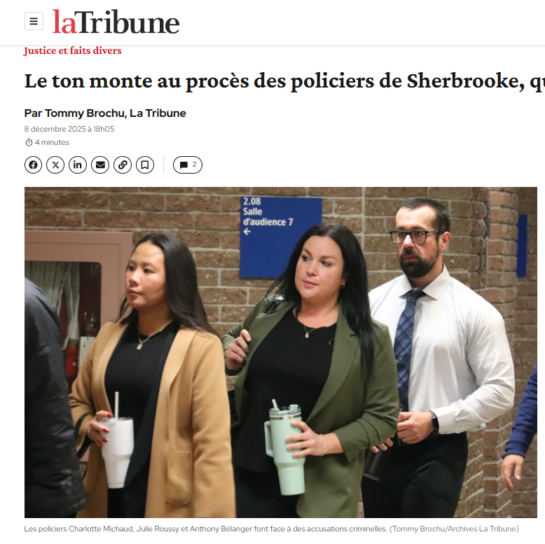 SHERBROOKE : LES IMAGES CHOQUANTES DE L’INTERVENTION MUSCLÉE DES POLICIERS ENFIN RENDUES PUBLIQUES AU PROCÈS
