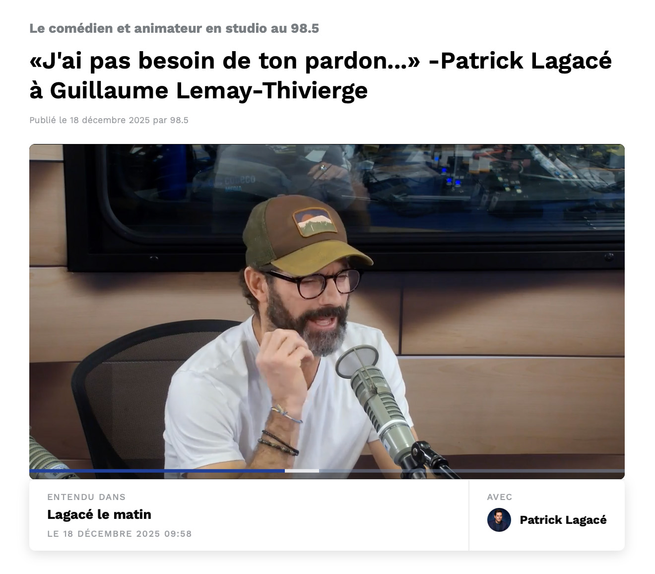 En passant, j’ai écouté l’entrevue et tout ce que Lagacé dit c’est qu’il a estimé que c’était d’intérêt public, sans jamais dire pourquoi.