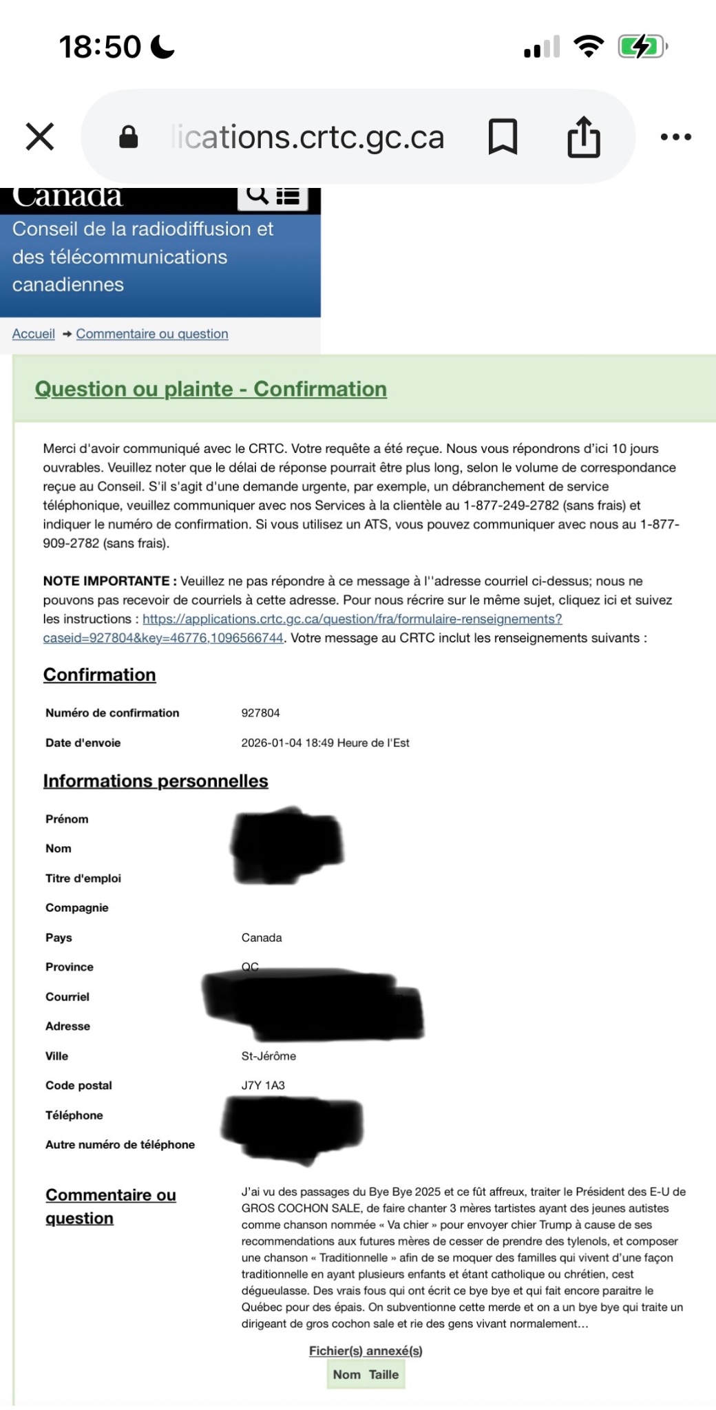 J’ai pas eu encore de réponse du crtc.