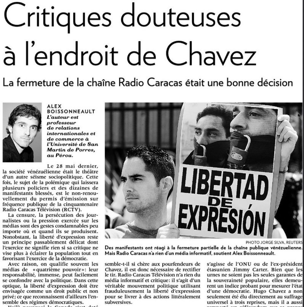 Quand on le lit, on est encore plus perdu à savoir où il s’enligne: Le Venezuela est dictatorial, il ferme le diffuseur national, en contravention des droits à la liberté d’expression, mais en même temps c’est un diffuseur qui servait à diffuser de la propagande, donc c’était tant mieux qui ferme… ?