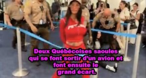 Deux Québécoises saoules qui se font sortir d’un avion et font ensuite le grand écart.