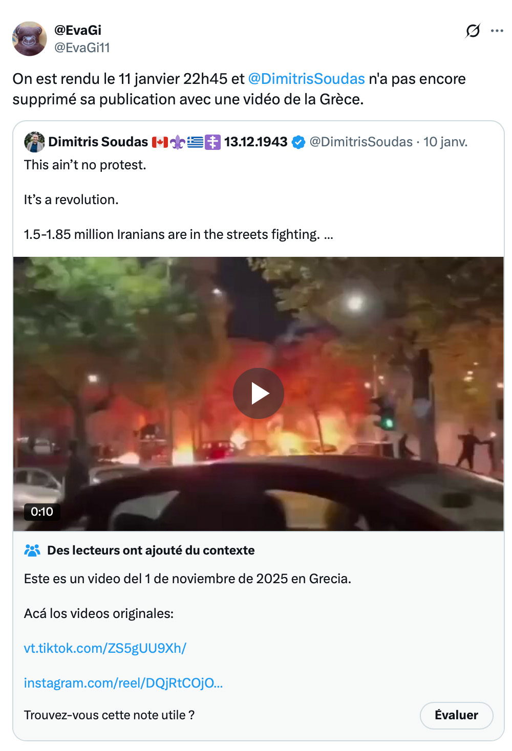 On est rendu le 11 janvier 22h45 et @DimitrisSoudas n'a pas encore supprimé sa publication avec une vidéo de la Grèce. https://t.co/eXNYxilQne