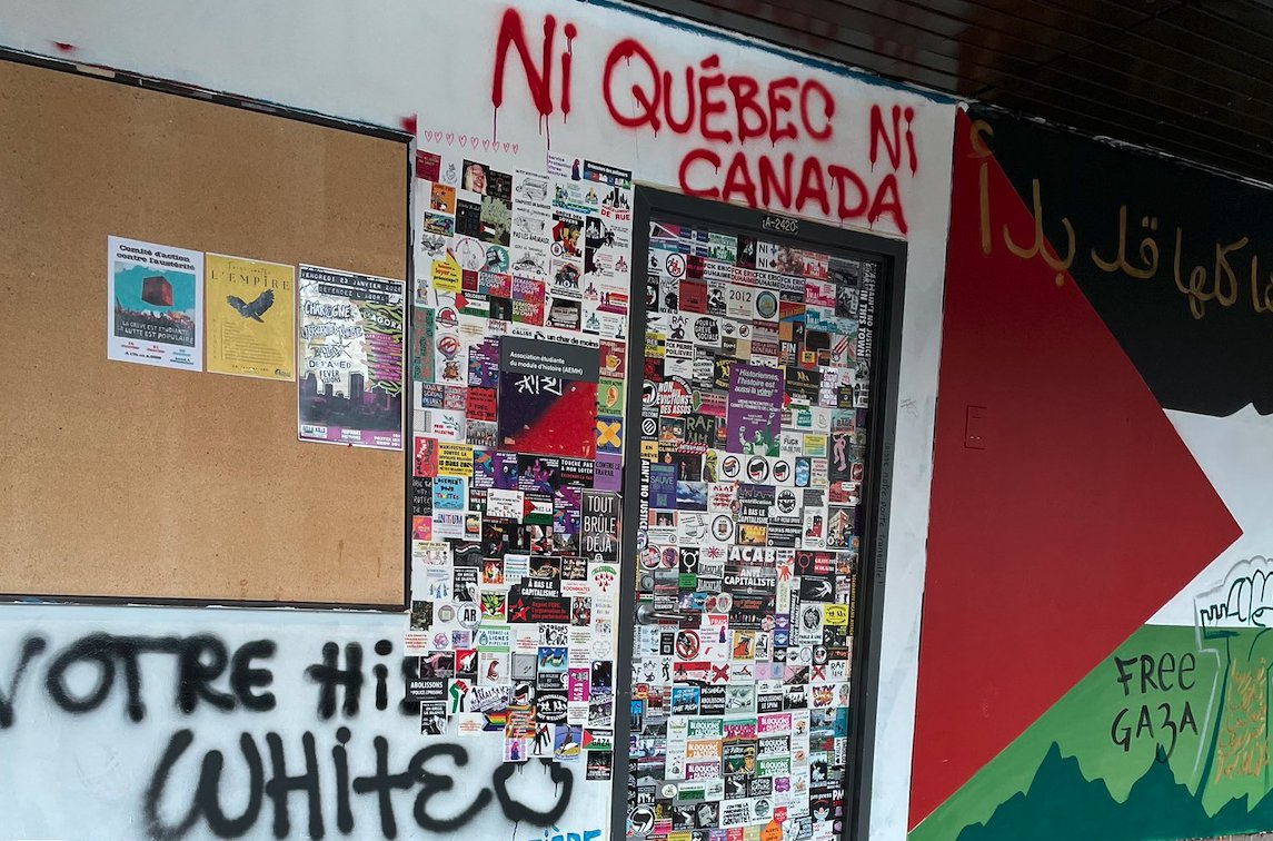 Ni Québec Ni Canada = Ça pense écrire des slogans anarchistes mais ça répète ce que les multinationales souhaitent vraiment. Le capitalisme mondialisé se porte bien, avec de tels idiots utiles.