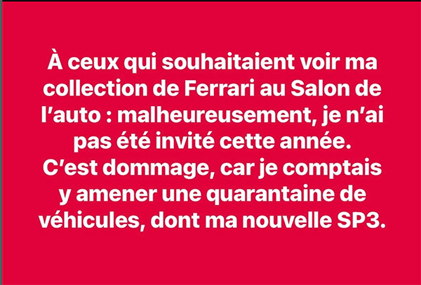 J’imagine que le Salon de l’Auto commencait à trouver que ça faisait un peu trop le salon Luc Poirier, et avec raison.