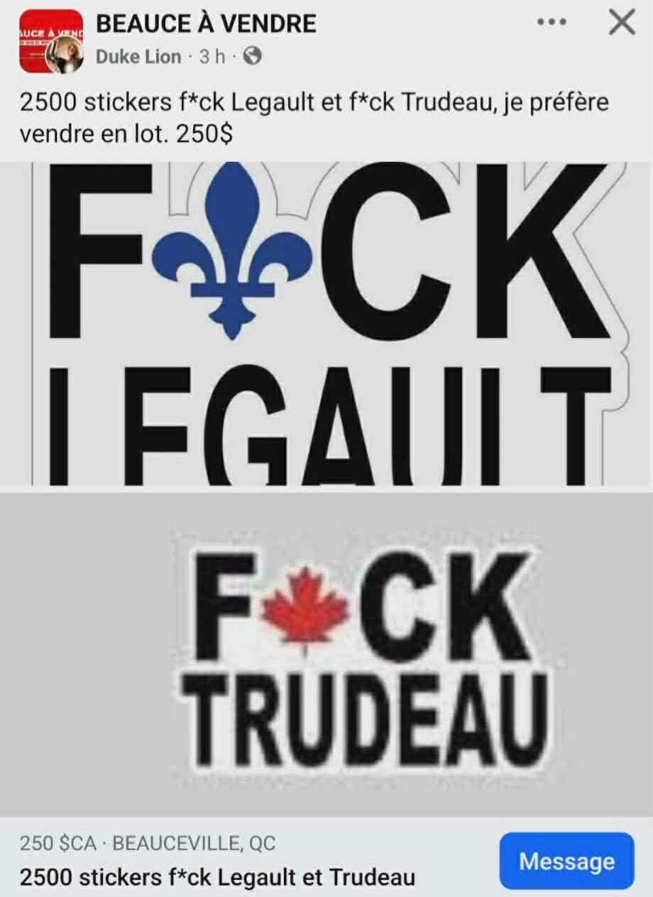 Oups… les coucous veulent vider leur inventaire! Vous allez devoir baisser les prix! 😂😂😂 Commentaire inutile à m’envoyer: 2 pour 1 peut-être? Navigation des articles ← François Legault a démissionné à cause de… Pierre Dion! Serge Denoncourt démolit la nouvelle série de l’heure Heated Rivalry! → Label Nom* E-mail Label Nom* E-mail 23 Commentaires Commentaires en ligne Afficher tous les commentaires anti-montréaliste 5 heures il y a Fuck la Beauce, il t’en reste tu ? Père Gédéon 3 heures il y a Répondre à anti-montréaliste Nop! Je les ai tous achetés. En stock prochainement 1 heure il y a Répondre à anti-montréaliste « Fuck les dents naturelles » est en rupture de stock. Le Quebecois docille et fière de l'etre 59 minutes il y a Répondre à anti-montréaliste J’vais prendre 2 lots de Fuck Montréal Le fabriquant 5 heures il y a 250 $ pour des collants passés date. Chose la 2 heures il y a Répondre à Le fabriquant Tu sais que c’est un troll right? Sharp EL-531 (le vrai) 7 minutes il y a Répondre à Chose la Non, justement, c’est à vendre pour vrai Junior Galarneau, père 5 heures il y a Trudeau s’est reproduit. Jamais deux… Bobos fragiles 5 heures il y a Ces gens vivent encore en 2021. Les collants vont être bons longtemps ! Le pacte du je-me-moi 5 heures il y a Beauceville…. il n’y a plus rien à ajouter! Muhahaha 4 heures il y a Un troll qui achète ça et les collent sur les autos du plateau hahaha Stephane Gaudette 26 minutes il y a Répondre à Muhahaha T’sé ce qui est ben drole….toé tu vois ces 2 la comme etant de gauche….pis ceux qui sont de gauche les vois comme etant des dretteux Albert Ramstein 4 heures il y a En Beauce…seul endroit où il va pouvoir les vendre… le connard déchaîné 4 heures il y a 2 500 stickers! Ok 0.05$! Pis je suis généreux! Euh... 4 heures il y a Un autre de nos « déplorables » qui confond le nombre de sa clique avec le bruit qu’ils émettent. Ça donne 2500 collants de trop ! Famuel Grenier 4 heures il y a Répondre à Euh... Et il en avait fait imprimer 3000!! Sharp El-531 (Le vrai) 4 heures il y a La Beauce….bien sur. L'everest au volant 4 heures il y a Ça devrait plutôt être « donne-moi 250$ puis je vais t’en débarrasser. » L’usure du pouvoir des coucous 4 heures il y a Il devrait garder ses collants, ils ont un véritable pouvoir car les deux ont vraiment fini par partir, en démissionnant en plus. Sainte-Beuve 3 heures il y a « Fuck les morons ». Ce serait déjà un grand pas pour l’humanité. Chose la 2 heures il y a https://youtu.be/gd3Y4o95ObU?list=RDgd3Y4o95ObU Yannick 1 heure il y a Il en a 2500 de ces cochonneries, ça veut dire qu’il les a fait produire pour les vendre. Si lui n’arrive plus à les vendre, pourquoi quelqu’un voudrait acheter le lot. Il ne reste plus que faire fabriquer des collants FUCK MYSELF. DesMarais 1 heure il y a Qu’il reste avec sa scrap.