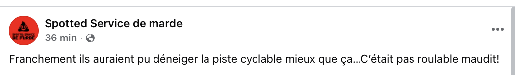 A bin les trottoirs peuvent etre mieux déneiger que les pistes cyclables