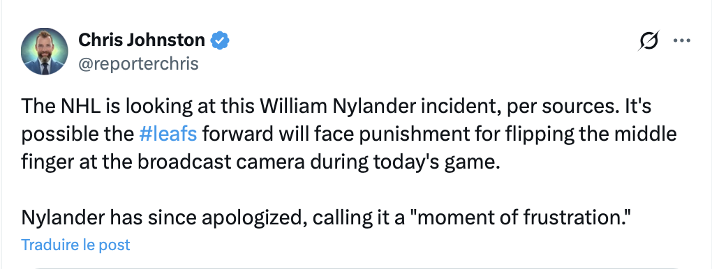 J’ai 53 ans et j’ai prédit que Toronto et Montréal ne gagneront pas la coupe d’ici mes 70 ans, donc rien avant 2043. Au moins j’ai souvenir de 1986 et 1993. Quant aux Maple Laughs, plus ils s’enfoncent plus je me réjouis, je les hais plus que Boston…