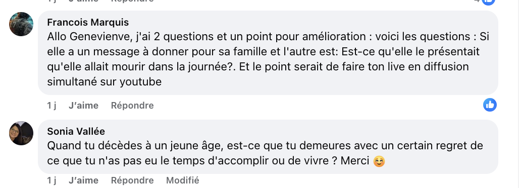 Heille Geneviève, peux-tu demander à Doc s’il a pu rejoindre sa jambe qui était morte avant lui ?