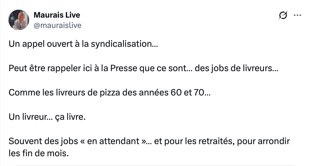 Raison de sous payer? C’est simplement une job de livreur!