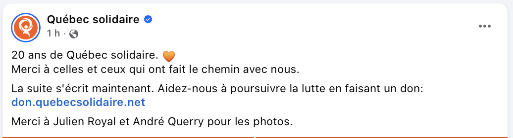 Leur « peak » aura été de 2018 à 2022, où ils occupaient la une à chaque semaine grâce à Catherine Dorion et GND. Qu’on les aime ou non, ils ont su canaliser l’attention à ce moment jusqu’à être pendant un moment des candidats sérieux à l’opposition officielle alors qu’ils étaient à 20-25% dans les sondages.
