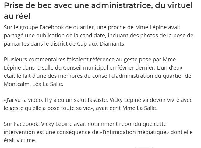 Résumé : la diffamation de Vicky Lépine, ce n’est est pas grave car il y a d’autres enjeux importants.