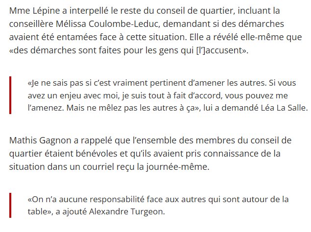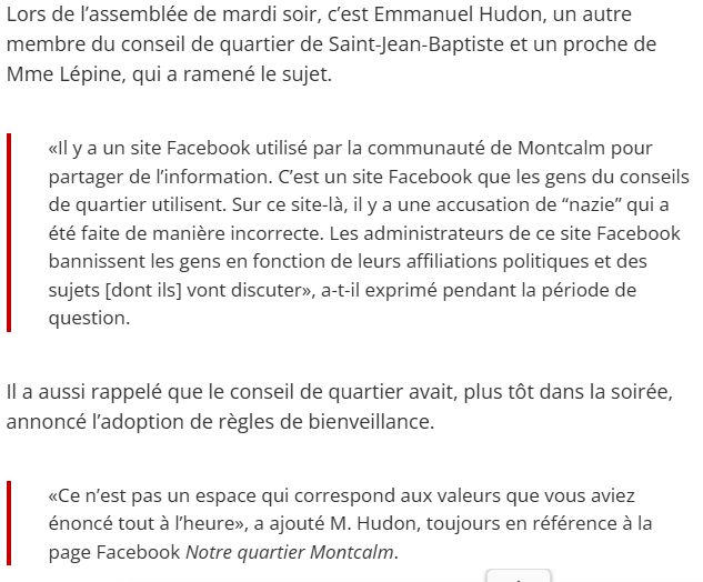 Son argumentaire d’outré à la Ruba Ghazal n’efface pas qu’un élu en position de pouvoir a diffamé directement et injustement une citoyenne qui s’opposait à ses méthodes et affecté négativement sa vie à cause de paroles fausses.