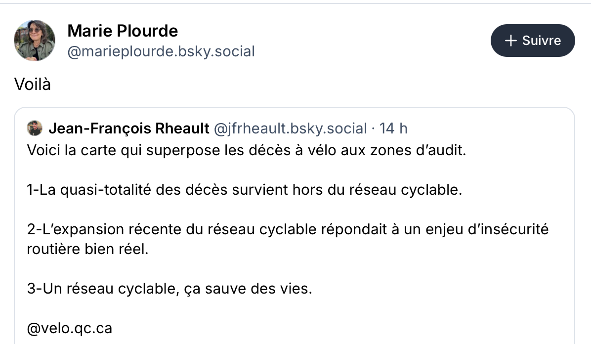 Si je comprend bien on a charcuté le réseau routier de Montréal pour 1 décès par année et ou très souvent, c’était le cycliste en faute?