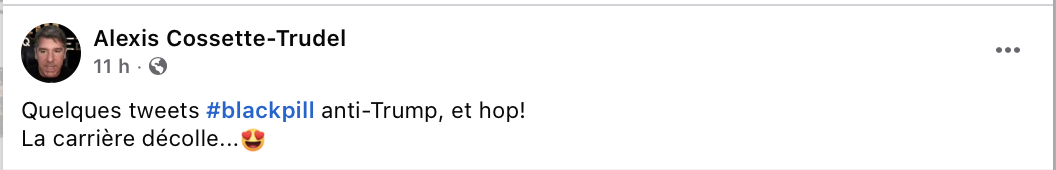 Ça fait une décennie qu’il se contente de balancer des phrases creuses comme « Hold the line » ou « sortez le pop-corn », attendant des arrestations qui n’arriveront jamais. Dans dix ans, on aura droit au même cirque. Et quelle audace de traiter de blackpill ceux qui ont enfin compris que la gauche et la droite ne sont que des marionnettes au service d’Israël. Le Front national de Jean-Marie Le Pen était vilipendé pour son antisémitisme, et maintenant, c’est le LFI de Mélenchon qui subit le même sort, pour les mêmes raisons. Peu importe le camp, tant que tu es prêt à leur cirer les pompes, tu peux faire parti du show.
