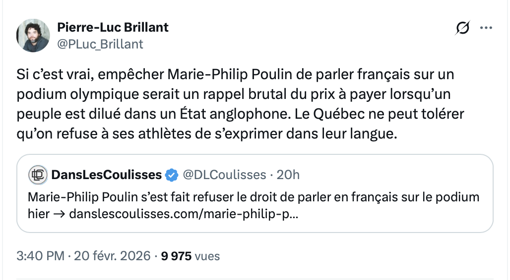 Poulin aurait dû se tenir debout et monter sur ses grands chevaux pour défendre le fait français.