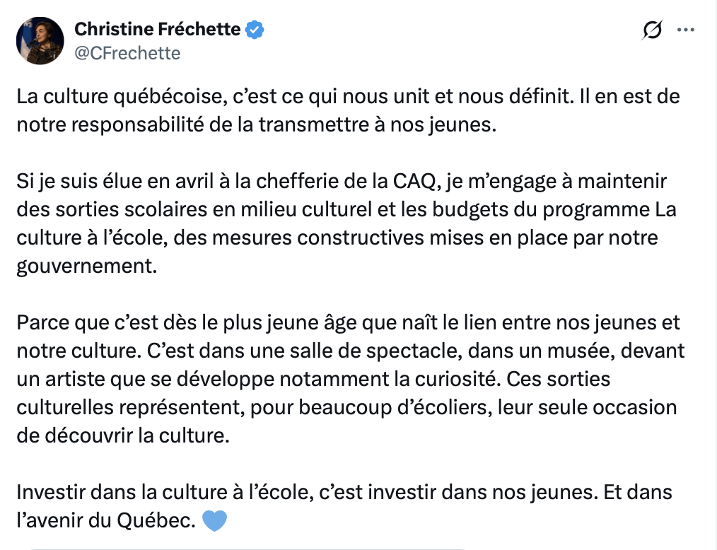 « Christine Fréchette sait quoi faire pour avoir le vote des artistes… mais pas de la population » ?