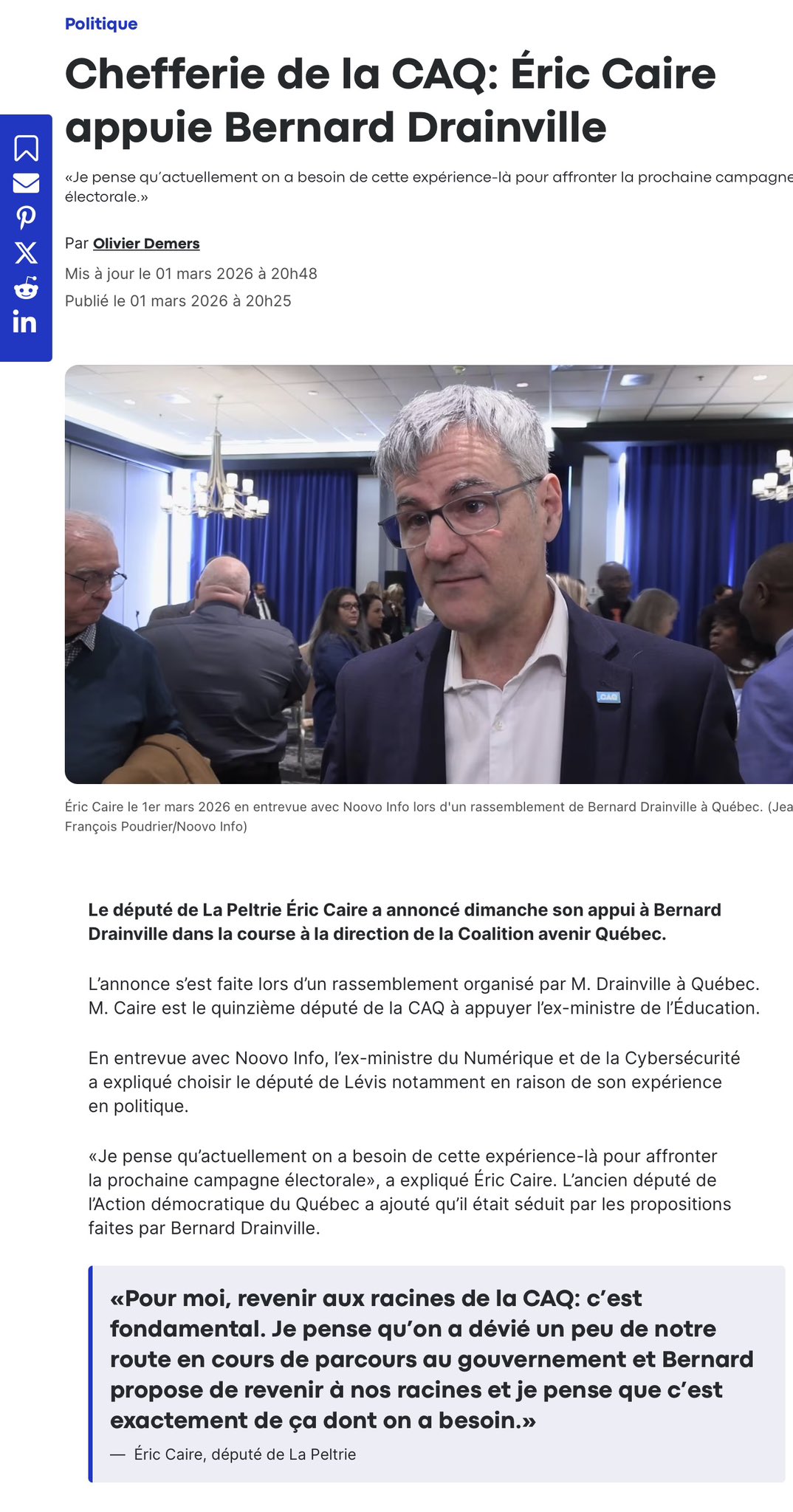 Caire, Drainville…y’a rien qui sonne moins renouveau que ces deux noms là. Si au moins ils avaient été une seule fois pertinents dans leurs carrières mais non, on parle de 2 politiciens poches sans charisme.