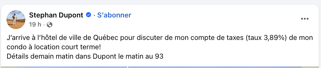 Colon Dupont qui pleurniche sur les taxes de son condo Airbnb à Québec!
