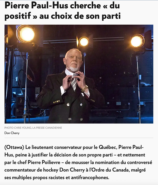 PPH est un pur idiot , j aimerais bien voir les z artistes et personnalités franco qui ont déjà reçu l ordre du canada la remettre au gouverneur en guise de protestation.