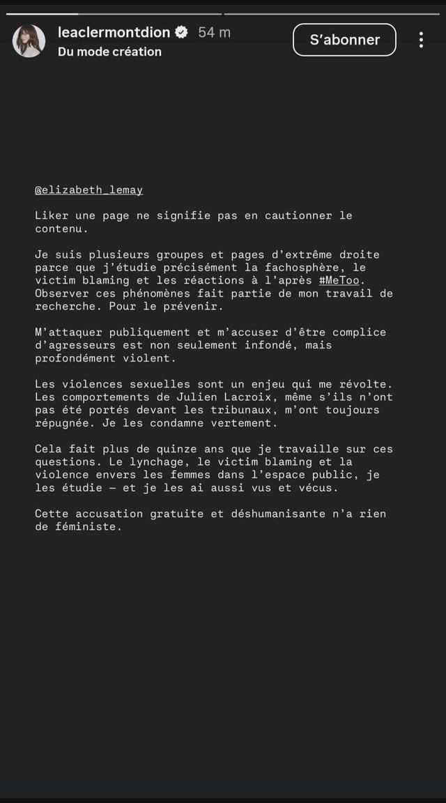 Léa trouve que la critique «n’a rien de féministe», comme si être féministe protégeait contre la critique venant d’autres femmes. Assez court comme commentaire.