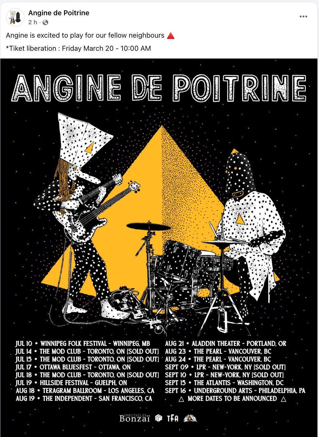 Il y a plein de shows d’Angine de Poitrine au Québec….