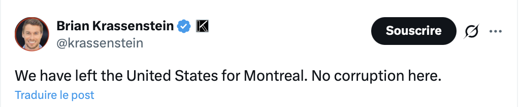 Est-ce qu’ils sont venus dépenser leurs frics à Tremblant pour faire du ski pis aiment leur séjour ? Alors, là, bravo. Par contre, s’ils ont déménagés pour de bon et croient qu’il n’y a pas de corruption, alors là, ils se trompent. Le Québec est l’inventeur de la corruption.
