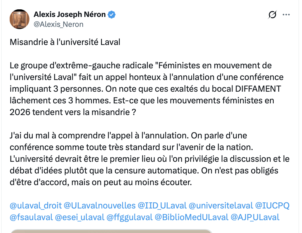 si l’évènement se fait anunuler j’espère qu’ils sont prêts à en tenir un ailleurs pour profiter de l’effet streisand comme la fille de l’UQAM