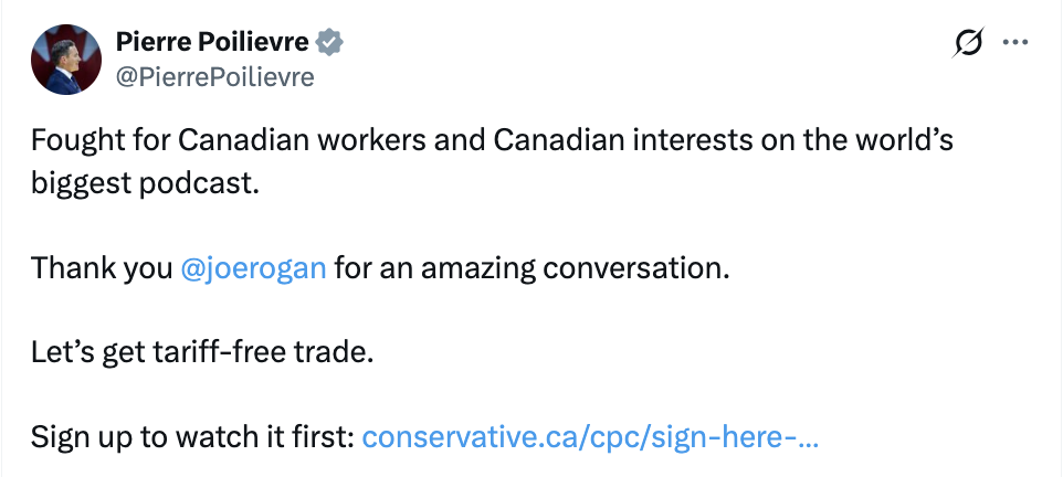 Poilievre qui va au podcast de cette pourriture! Ark…. comment descendre si bas? Commentaire inutile à m’envoyer: il veut des votes américains? Navigation des articles ← CTV sur la visite de Poilievre au podcast de bouette! Safia furieuse contre le milieu artistique au complet!!!!! → Label Nom* E-mail Label Nom* E-mail 4 Commentaires Commentaires en ligne Afficher tous les commentaires Vu de même 1 heure il y a 11 millions d’auditeurs mensuellement. Ceci explique cela. Weber 11 minutes il y a Répondre à Vu de même Bonne décision. Les gauchistes sont frustrés… NASA 49 minutes il y a Rogan n’est pas un vrai droitare. Il a récemment dénoncé les raids d’ICE quand ça devenait trop chaud. Le gars est un centriste mou. Comme Popo. Le p’tit laid dans Air Supply 32 secondes il y a C’est prodigieusement intéressant. You’re yesterday’s news, Poilièvre!