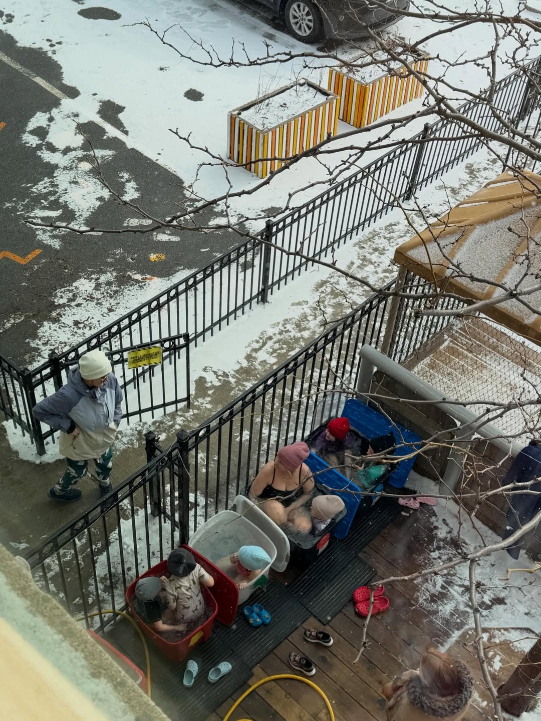 Des enfants habillés dans des bac en plastique remplis d’eau. Kosséça? ⁉️