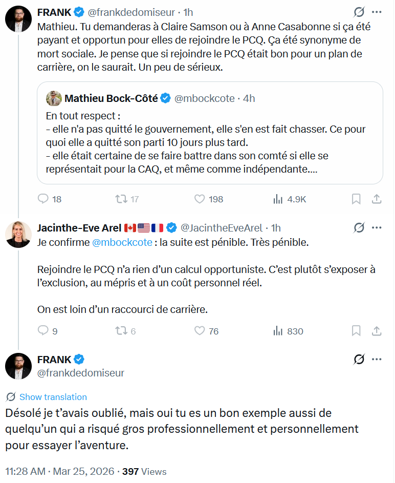 Rejoindre le PCQ n’est peut-être pas bon pour le plan de carrière sauf si tu crois que le comté où tu vas te présenter va être gagnant pour toi.
