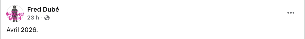 Le très « poche » Fred Dubé, gentiment invité à prendre une retraite forcée de la sphère publique « cancellation » par trois femmes courageuses », vient de nous pondre un chef-d’œuvre… imaginaire. Fidèle à son immense talent de créateur de malaise, il a inventé un bouquin dont même le numéro ISBN au verso est une fiction. C’est brillant : une œuvre fantôme pour un humoriste qui l’est tout autant. Dubé a toujours eu le comique d’un primate en phase terminale, et cette couverture de livre inexistante est sans doute sa meilleure blague à ce jour. Un concept révolutionnaire : l’humour sans le rire, et maintenant, la littérature sans le livre.