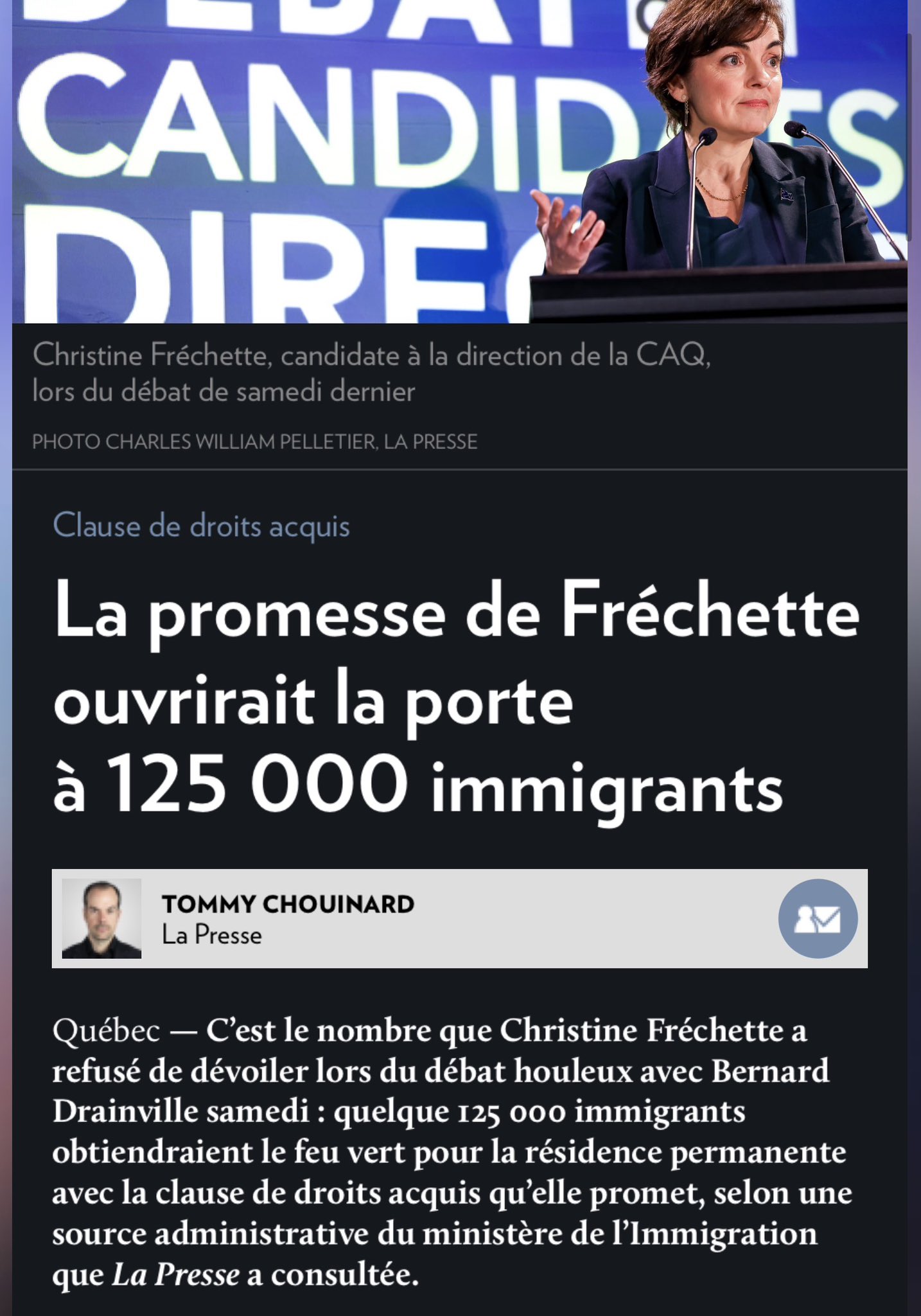 Fréchette a raison. Presque tous ces 125 000 immigrants sont déjà ici : souvent diplômés d’universités québécoises, travailleurs dans des secteurs en demande, francisés et bien intégrés. Ils contribuent à l’économie et à la société depuis des années. C’est une question d’équité envers ceux qui ont fait des choix en fonction des règles qui étaient en place. Il faut aussi éviter les amalgames. Ces profils n’ont rien à voir avec des incidents isolés largement médiatisés, comme le type qui insulte les policiers. Réduire leur réalité à ces cas marginaux fausse le débat.