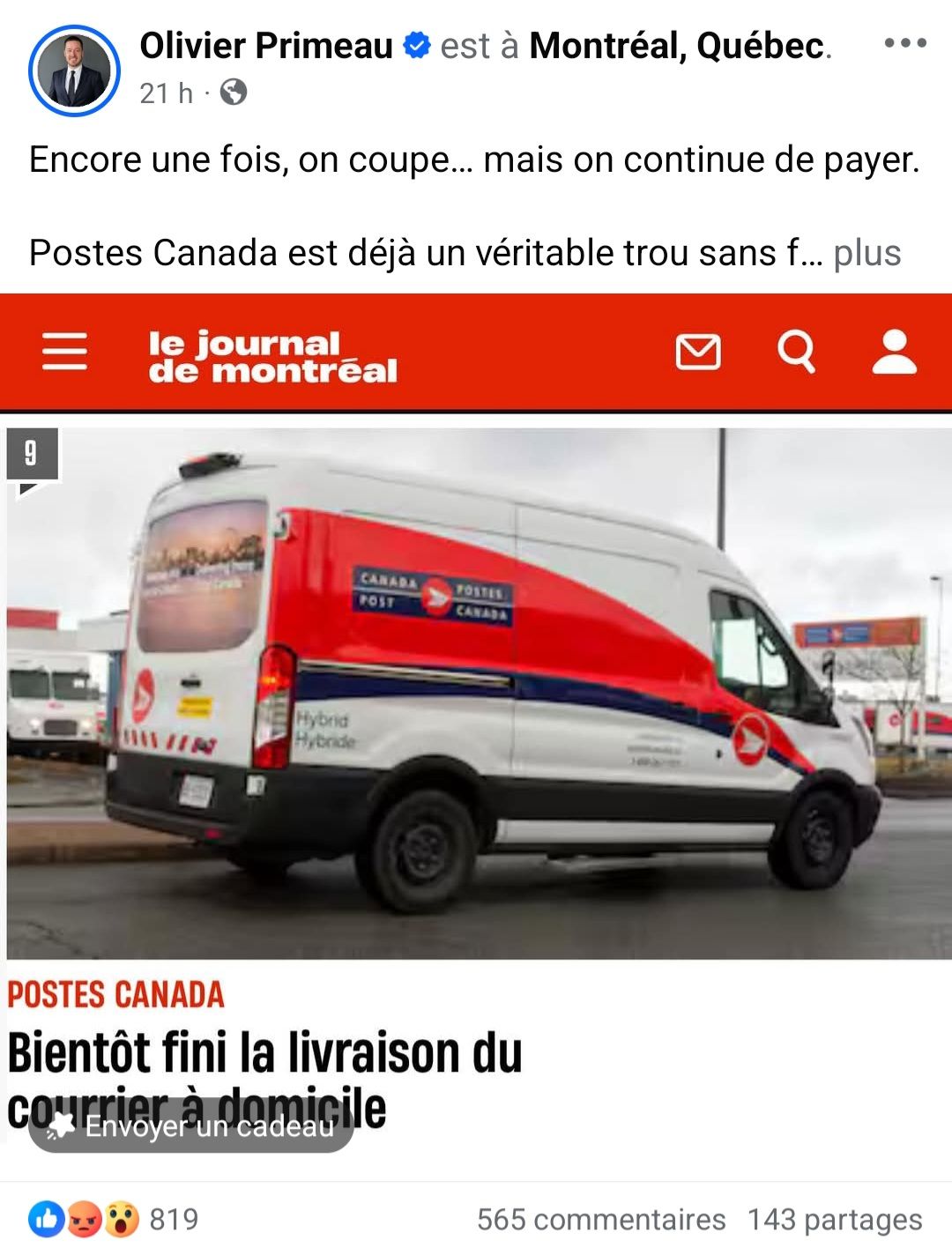 Poste canada c’est très lent, très chère et c’est financer les wokes. Les batteurs de femme, les immigrants, les femmes, les trans etc avec nôtre argent.
