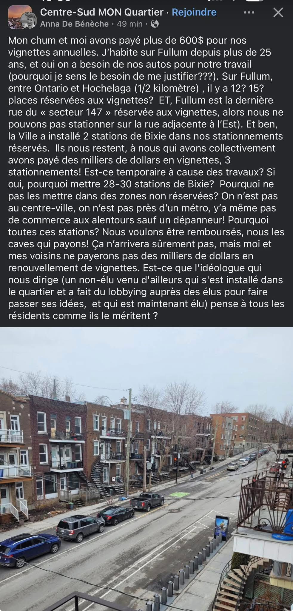 Brailler parce que la ville installe des Bixis au lieu de ton stationnement!