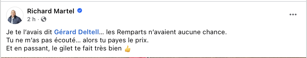 Deux ti-clins sur du hockey écouté par 12 personnes! Les pires clowns au Québec! Commentaire inutile à m’envoyer: ils travaillent 40 heures semaine? Comment avoir de la bouffe gratuite au Canada! Navigation des articles ← Les fautes sur les produits de François Lambert toé! «Le vrai renouveau, c’est Farnell Morisset dans Taschereau» → Label Nom* E-mail Label Nom* E-mail 3 Commentaires Commentaires en ligne Afficher tous les commentaires Peter B. Parker 1 heure il y a On devrait interdire ça le hockey. C’est beaucoup trop violent. Un sport de machisss. À l’UQAM, ça revient souvent cette idée lors de nos discussions à l’intérieur de notre safe space. L’avenir nous apparitient, à nous, les féminisss. Peter B. Parker 1 heure il y a On devrait interdire ça le hockey. C’est beaucoup trop violent. Un sport de machisss. À l’UQAM, ça revient souvent cette idée lors de nos discussions à l’intérieur de notre safe space. L’avenir nous appartient, à nous, les féminisss. LOL 23 minutes il y a Si ça avait été Carney et Milliard, Clique aurait probablement applaudi.