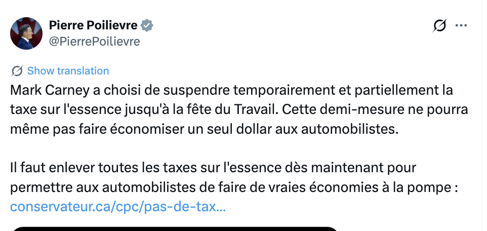 De toute façon, l’abolition de la taxe d’accise fait juste en sorte que les pétrolières, raffineries et distributeurs vont juste augmenter leur marge de profit. Dans 3 mois ça ne paraîtra même plus.