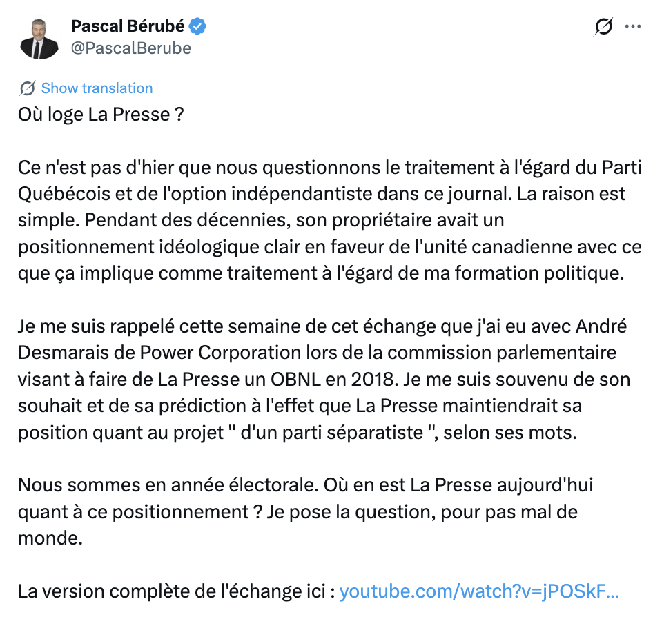 […] Pascal Bérubé se demande où loge La Presse? […]