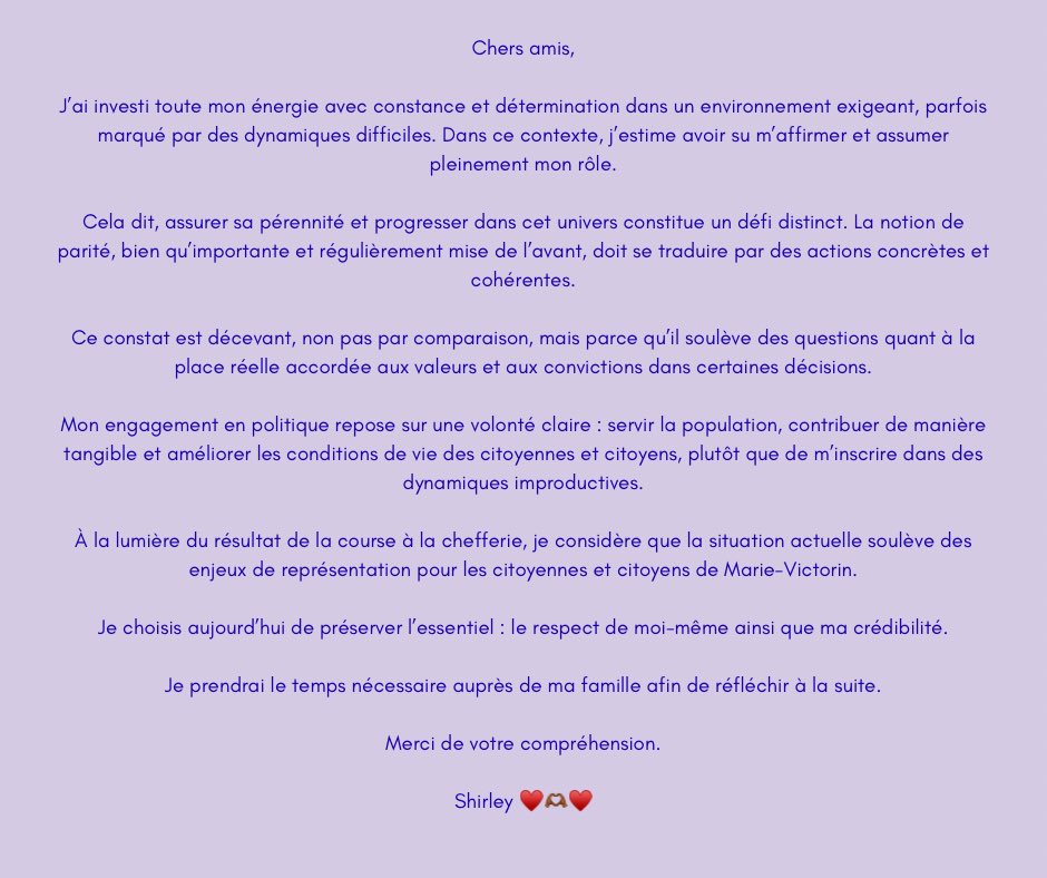 La très médiocre Shirley Dorismond va subir une raclée électorale pleinement méritée l’automne prochain.