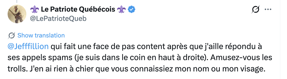 Il a probablement sa carte du PQ et son passeport québécois en plus.