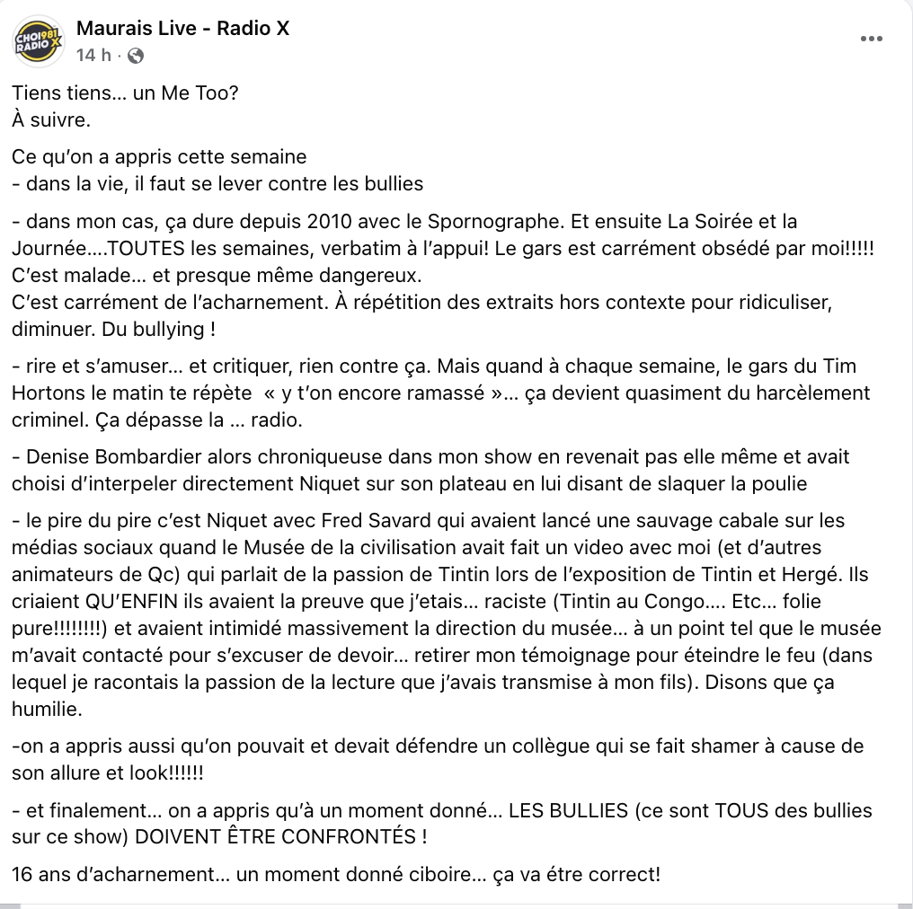 Commentaire inutile à m’envoyer: Maurais a le droit, c’est privé Radio X!