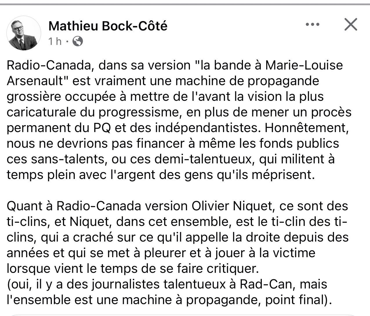 enfin quelqu’un qui dit la vérité sur cette imbuvable Arsenault et que dire du pape du dimanche soir