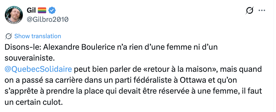 Il ne mérite pas d’être élu QS, même s’il a le support de la gang de Radio-Canada.