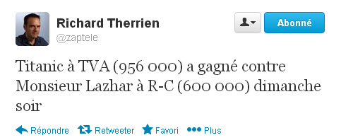 Via notre ami qui nous donne à chaque jour des cotes d’écoutes, Rich Therrien!